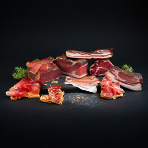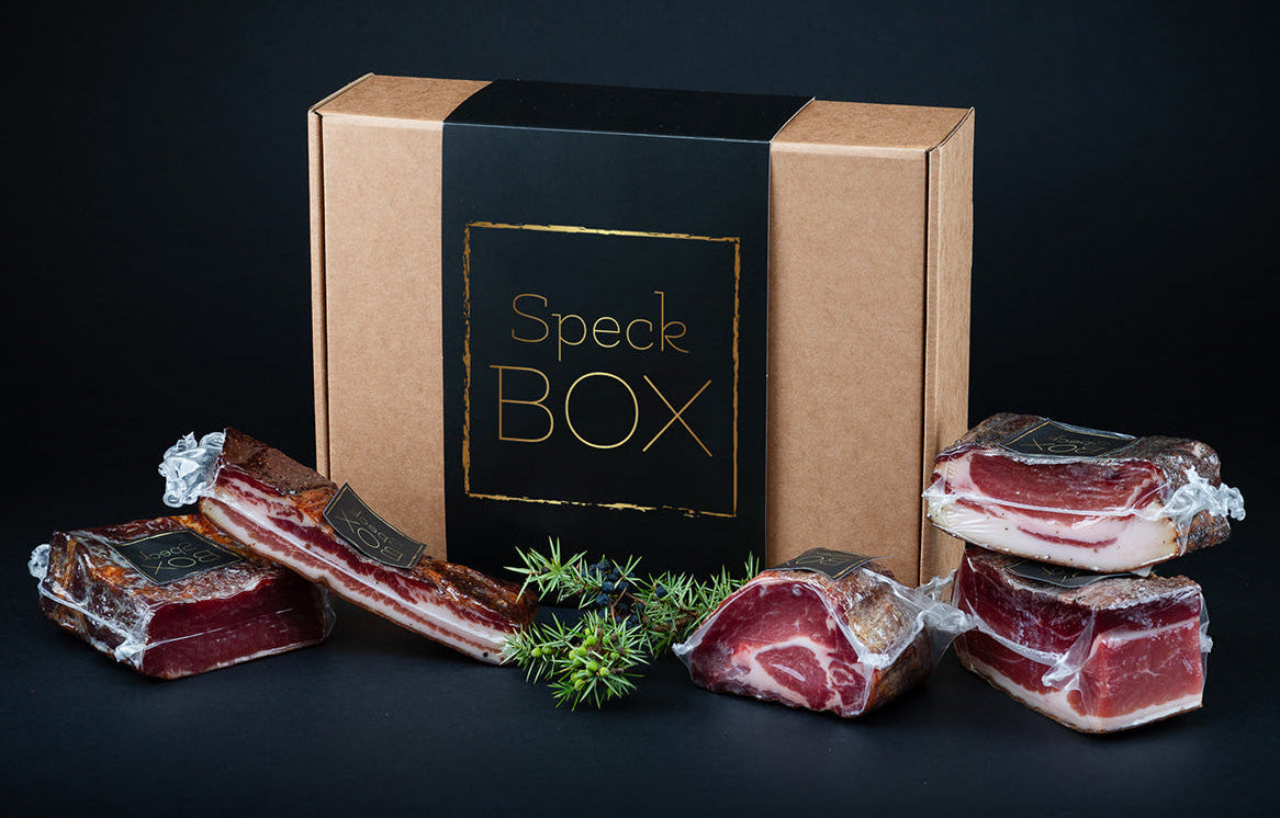 Die SpeckBox vereint fünf unterschiedliche Speckstücke vom Schwein, wie sie in Südtirol traditionell verarbeitet werden.