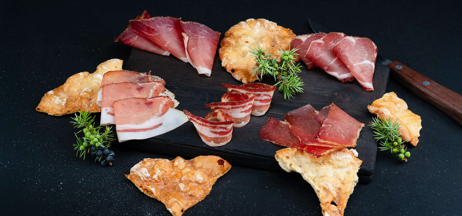 - Schinkenspeck g.g.A. – Der klassische Südtiroler Speck mit harmonischem, leicht rauchigem Geschmack.